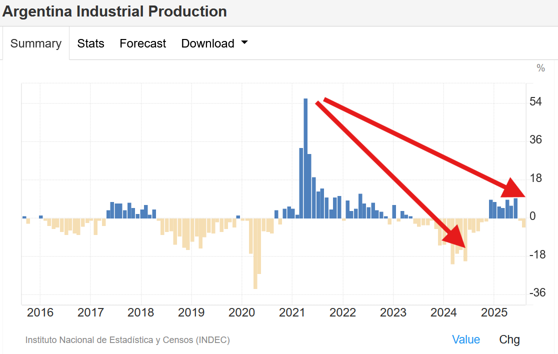 All of these economic ills can be seen manifesting clearly in Argentina’s industrial production data.