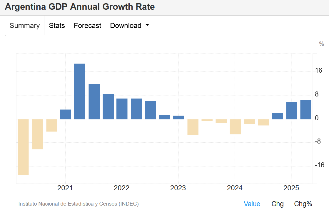 The Gross Domestic Product (GDP) in Argentina contracted 0.10 percent in the second quarter of 2025 over the previous quarter. There has been some improvement in Annual GDP Growth