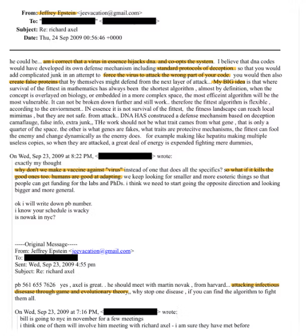 One of the revelations of the latest batch of Epstein files is his strong interest in viruses, vaccines, pandemics, and mRNA. Two months after getting out of jail, he is writing about viruses, infectious diseases, and something he calls “My BIG idea.”