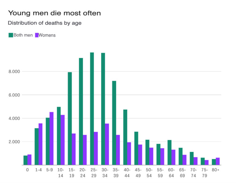 The scientists’ calculations show that approximately 27 percent of war dead are likely children under 15, and about 24 percent are women. According to the Max Planck researchers, the estimated distribution of deaths by age and gender corresponds to what the United Nations has observed in past genocides. In contrast, in fighting between armed groups, the deaths are much more concentrated among young men.