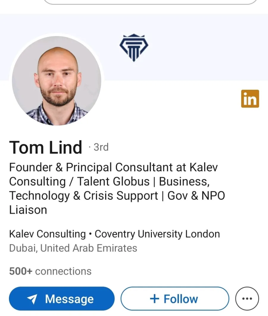 The only name that consistently appears across corporate records is Tomer Janar Lind, an Israeli-Estonian entrepreneur who founded a company in Estonia called Talent Globus. That company, barely a year old, quietly served as the administrative backbone of Al-Majd. Its online presence, until recently, consisted of vague recruitment promises, generic stock images, disconnected phone numbers and international addresses that lead nowhere.