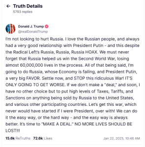 ANSWER: I think Trump’s post on Truth Social was a HUGE MISTAKE, and I am very, very, very disappointed. He slapped Vladimir Putin across the face, and what he did was put us in the crosshairs of World War III. There is now a VAST risk that Russia will NOT engage in peace talks shortly. Ukraine is a renegade proxy puppet. It has been the Hezbollah of our Neocons no different than what Iran has done against Israel.