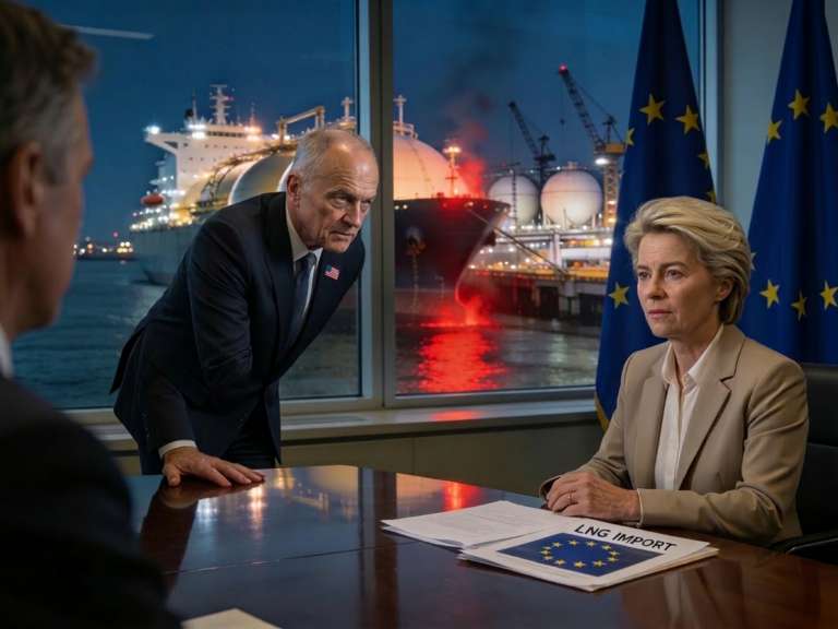 Ras Laffan burns, Hormuz chokes, and Trump’s envoy tells Europe to sign a $750 billion energy pact or lose its lifeline. Documents show this “shock” was structurally prepared in advance.