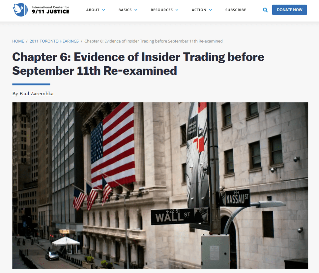 The SEC even used our research during 911. Just a month after the attacks the SEC sent out a list of stocks to various securities firms around the world looking for information. The list includes stocks of American, United, Continental, Northwest, Southwest and US Airways airlines, as well as Martin, Boeing, Lockheed Martin Corp., AIG, American Express Corp, American International Group, AMR Corporation, Axa SA, Bank of America Corp, Bank of New York Corp, Bank One Corp, Cigna Group, CNA Financial, Carnival Corp, Chubb Group, John Hancock Financial Services, Hercules Inc, L-3 Communications Holdings, Inc., LTV Corporation, Marsh & McLennan Cos. Inc., MetLife, Progressive Corp., General Motors, Raytheon, W.R. Grace, Royal Caribbean Cruises, Ltd., Lone Star Technologies, American Express, the Citigroup Inc. ,Royal & Sun Alliance, Lehman Brothers Holdings, Inc., Vornado Reality Trust, Morgan Stanley, Dean Witter & Co., XL Capital Ltd., and Bear Stearns.
