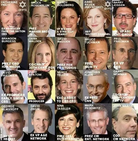 Most people in our wide world of conspiracies know that only six giant conglomerates control virtually all of the mainstream media. Thanks to awful legislation during the 1990s, and a real merger mania that destroyed whatever market competition actually existed, we are left with the reality that this crumbling culture of ours is largely in the hands of a very tiny “talent” pool. So who runs these six companies? Sumner Redstone is the owner of National Amusements. Bob Iger is the CEO of Disney. Time-Warner is run by Jeff Bewkes. Comcast is headed by Brian L. Roberts. Rupert Murdoch runs News Corp. I think you can guess which ethnic group/religion they all share. The sole exception here is Sony, which is now dominated by Japanese executives. Every motion picture studio, and every major television network, features a Jewish name at the top. However you look at it, that is pure unexplained dominance.