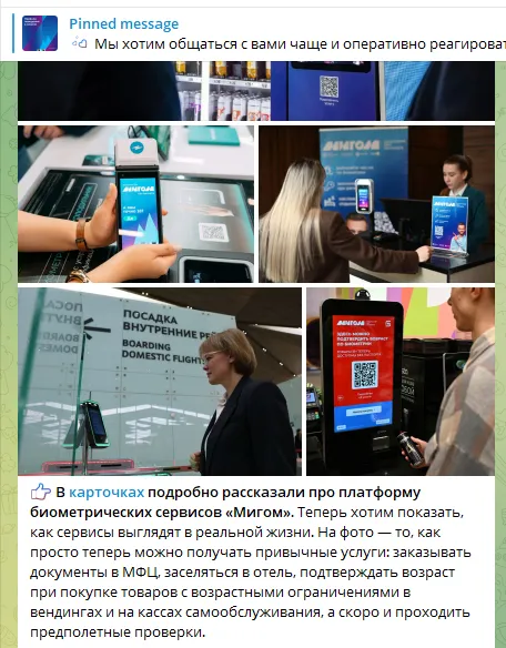 [W]e want to show you how these [biometric] services look in real life. These photos show how easy it is now to access familiar services: order documents at the MFC [government services portal], check into a hotel, verify your age when purchasing age-restricted goods [including energy drinks; no, not a joke] at vending machines and self-checkouts, and soon, undergo pre-flight security checks.