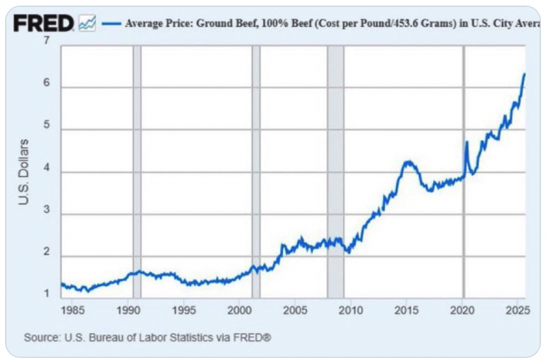 Just look at what is happening to the price of ground beef.  It now costs about three times as much as it did just 15 years ago…