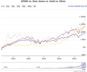 We are about halfway in this decade after the mega interest rate bottom, and silver is now really starting to pull away: