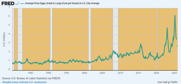 CPI Per Dozen For Grade A Eggs, 1980 to 2025