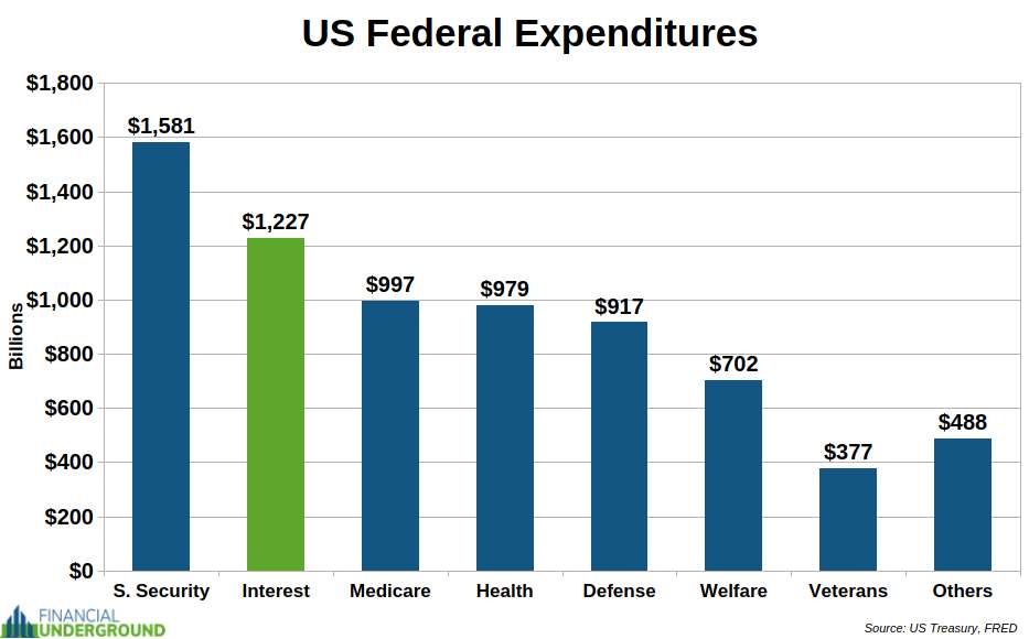 The interest on the federal debt is already the second-largest federal expenditure. In a matter of months, it’s set to exceed Social Security and become the biggest expenditure.