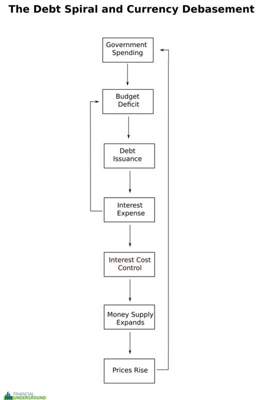 That’s why ever-increasing currency debasement is the inevitable outcome of the US government’s debt spiral.