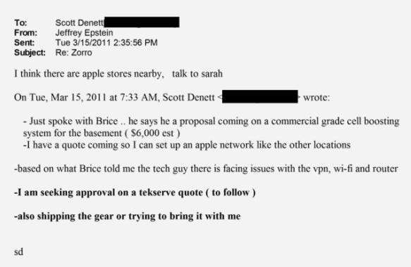 Epstein also had plans for commercial-grade cell boosters in the basement of Zorro Ranch to ensure mobile connectivity in the underground tunnels.