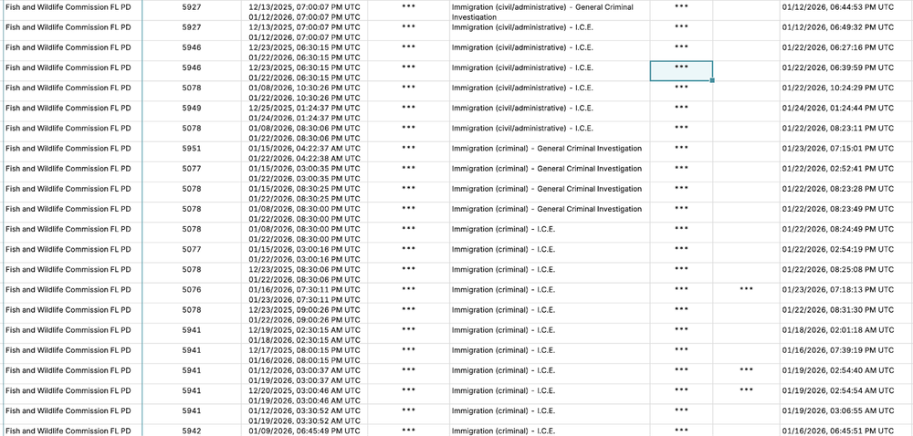 The Florida Fish and Wildlife Conservation Commission did not respond to multiple requests for comment. A spokesperson for Gov. DeSantis’s office, however, told 404 Media that the Fish and Wildlife Conservation Commission continues to work with ICE. “Please note that it is NOT out of the ordinary for FWC to work alongside ICE as they have a 287 (g) agreement with them-as do all State of Florida law enforcement agencies,” they said.
